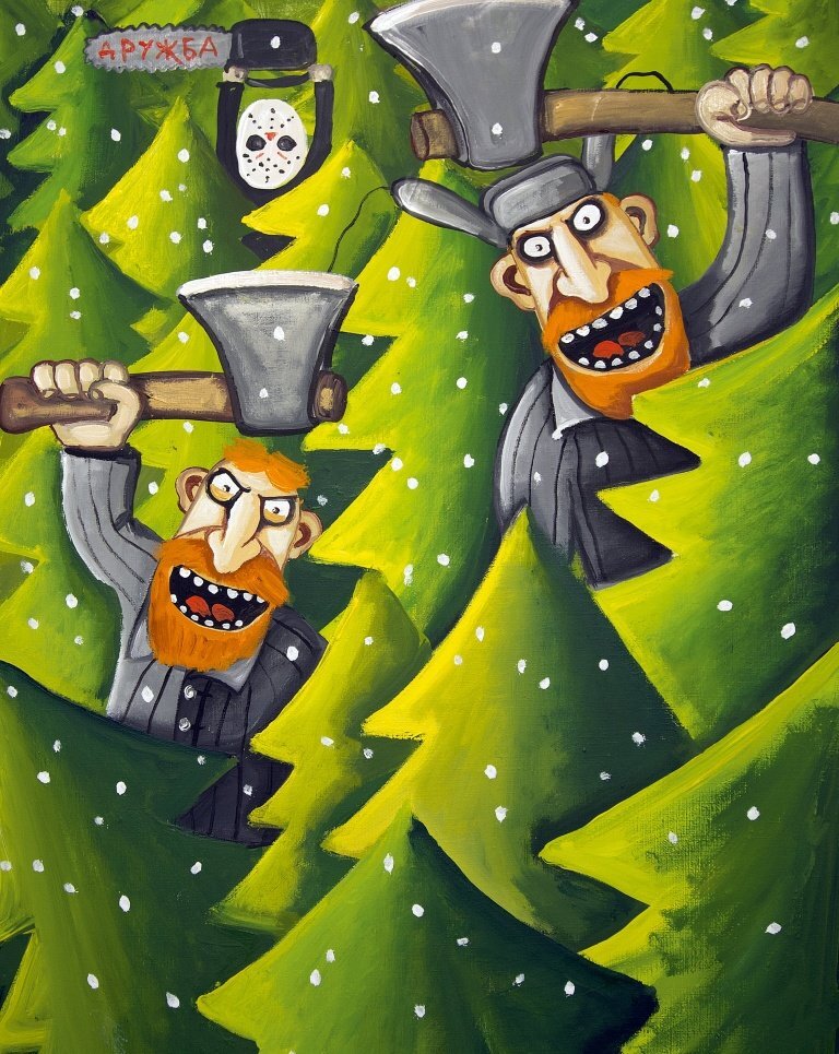 В пещерах под землей. К черту лирику. Бригада шотландских лесорубов в составе трех рыжебородых мастеров сочного мата и длинного топора, с целью повышения содержания алкоголя в крови и дубильных веществ в коже, приехала на обучение в лесозаготовительную компанию нашей республики. После содержательной беседы под нетрадиционные, но тем не менее, качественные башкирские напитки с запахом хвои и эфирных масел, бригада выползла из огнедышащей клетки (бани) в состоянии легкой эйфории. Мир казался таким милым, ярким и беззащитным. Его срочно нужно было спасать. И как уже сказал один добрый волшебник, есть только одна сила, способная на это – сила любви. Второй неоспоримый научный факт состоит в том, что сила любви измеряется в трехсотграммовых баночках башкирского мёда. Потому что до