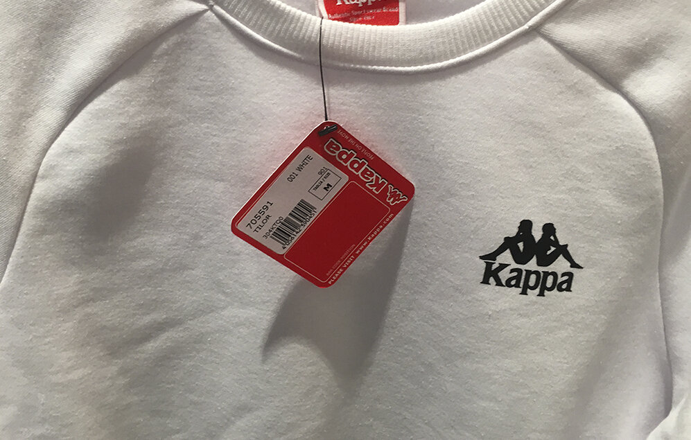 Kappa – итальянский бренд спортивной одежды, основанный в Турине в 1916 году. Бренд первоначально специализировался на производстве носков и стал называться Kappa только в 1967 году. Сегодня Kappa является ведущим брендом спортивной одежды, которую носят участники крупнейших команд мира и самые яркие звезды. Он производит уникальную экипировку для футбола, баскетбола, волейбола, автогонок, катания на лыжах, парусного спорта, гольфа, фехтования и единоборств. Коллекции уличной одежды Kappa отражают его североитальянские корни. Логотип с силуэтом выражает качество, человечность и подлинность. Оригинальная толстовка Kappa продается по цене около 60 долларов. Если вы нашли вещь по цене намного ниже, скорее всего, перед вами подделка. 1. У оригинальной толстовки Kappa на внутренней стороне выреза есть красная этикетка с логотипом и указанием размера. На груди также находится черный логотип-силуэт мужчины и женщины, прислоненных друг к другу. Он символизирует собой равенство мужчин и женщ