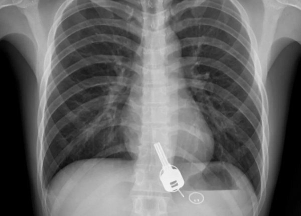 Жителю Китая потребовалась экстренная операция, чтобы извлечь инородное тело из его пищевода. Как оказалось, мужчина неосознанно проглотил ключ от дома, когда перебрал со спиртным, передает портал Oddity Central со ссылкой на китайский новостной ресурс Sohu. 7 июня 26-летний житель Гуандуна по имени Чанг собрался вместе с друзьями, чтобы отметить окончание рабочей недели. Домой он пришел посреди ночи и обнаружил, что не имеет при себе ключа. Китаец на тот момент был в сильно поддатом состоянии, поэтому не придал этому значения, а просто постучал, чтобы его впустили его домашние, решив, что потерял ключ. Об истинной судьбе своих ключей мужчина узнал лишь на следующий день, когда после пробуждения он испытал сильную боль в груди и вынужден был обратиться в местную больницу. Сотрудники клиники Дунгуань были шокированы результатом рентгена торса Чанга, ведь на снимке они увидели ключ с брелоком, застрявший в пищеводе пациента. Как ключ оказался в его теле китаец ответить не смог, ведь на