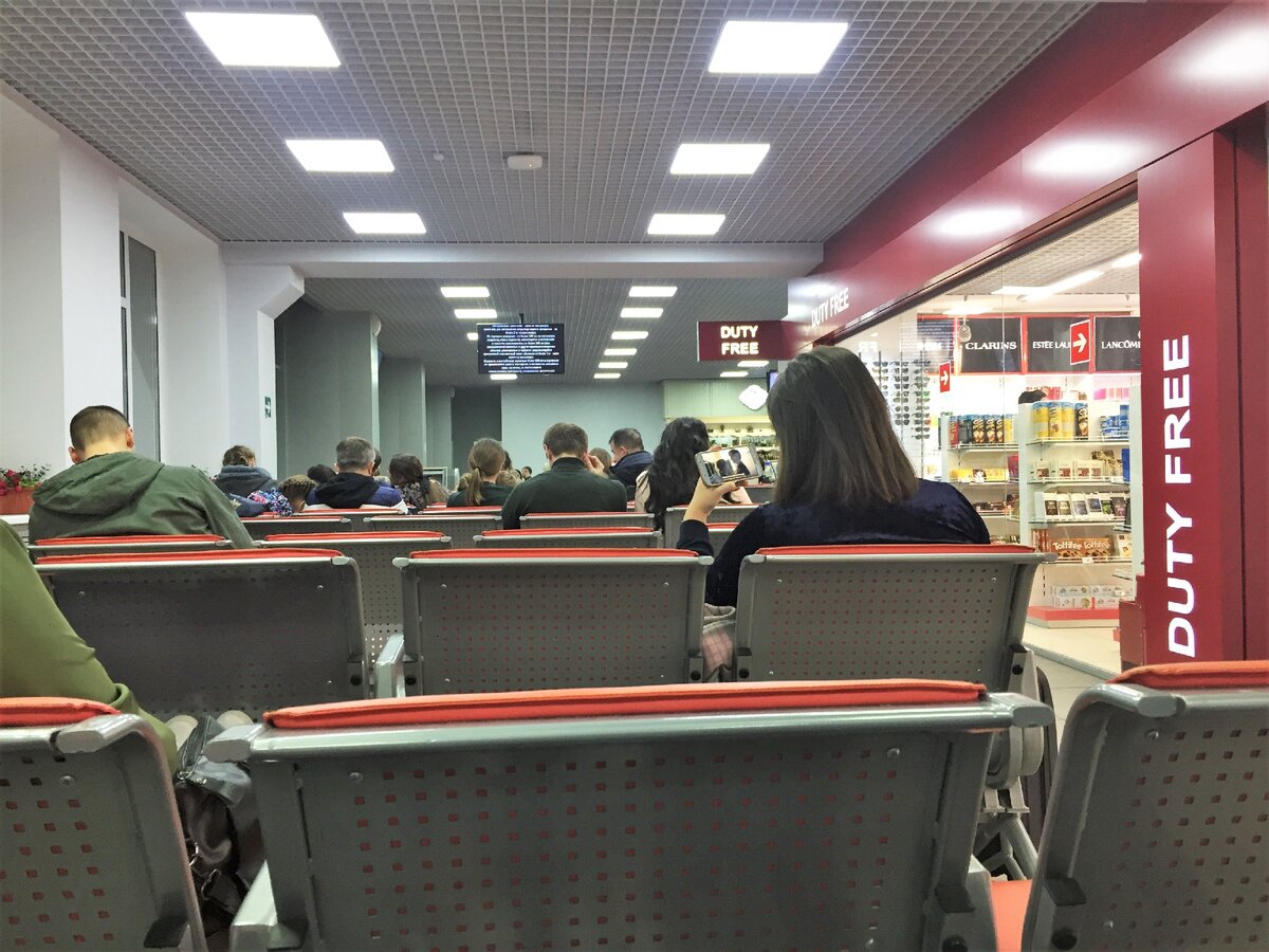 Отстояли очередь с нашими соотечественниками, получили билеты, сдали багаж и направились на прохождение предполетного досмотра и паспортного контроля.