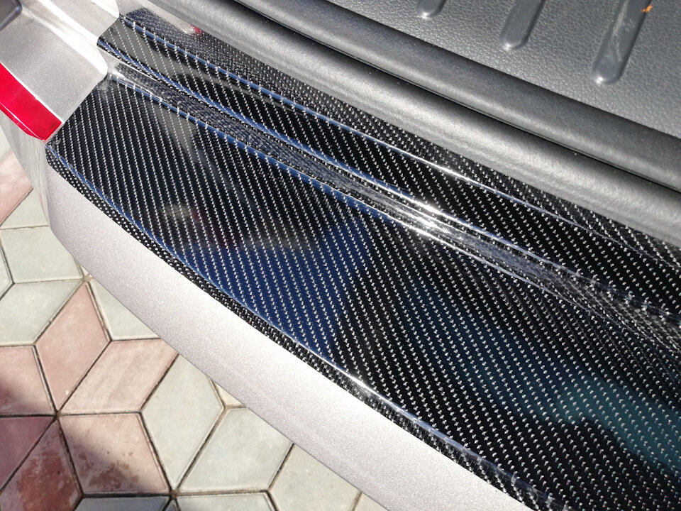 Выглядит эта оригинальная наклейка на проем бампера следующим образом. Пленка под карбон, вырезанная в размер проема бампера.
