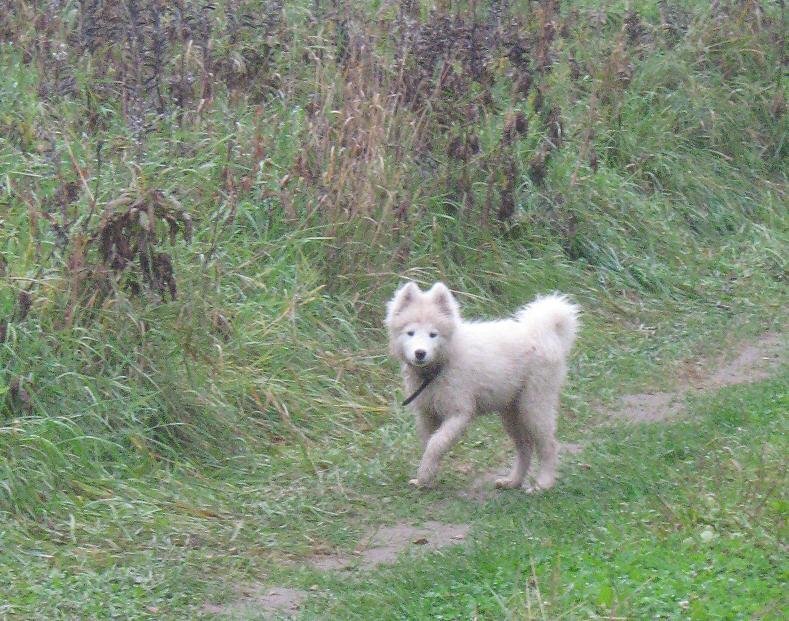 Змеи у нас на участке водятся и как-то не заканчиваются. Предыдущая собака регулярно прореживала их популяцию. А вот щенок самоеда был с ними еще не знаком. И, понятное дело, попробовал с этой странной шевелящейся палкой поиграть. Радостно прыгнул на встречу неизведанному и был кушен в любопытный нос. У меня в аптечке преднизолон присутствует всегда, как и активированный уголь. Так что первая помощь была оказана. После чего повез в город ветеринару показать. В городе щенку было дозволено, по случаю травмы, лежать и страдать на диване, что обычно не поощрялось. А тут еще принесли нам котенка. Маленького, только глаза открывшего. Он понятно страдал, в отсутствие мамы, а тут мягкая, теплая и пушистая подушка на диване лежит, дышит, и при этом ни куда не вскакивает (что для самоеда в нормальном состоянии не свойственно). Ну и устроился котенок на больном щенке. И тому тоже вроде как приятно. С того момента и подружились эти двое. Было смешно видеть как они из одной миски по очереди ед