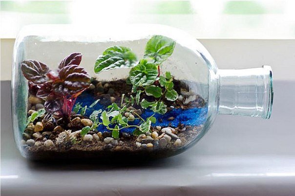 Таким образом, в такой бутылке можно вырастить миниатюрные джунгли или еще какую-нибудь композицию. На р