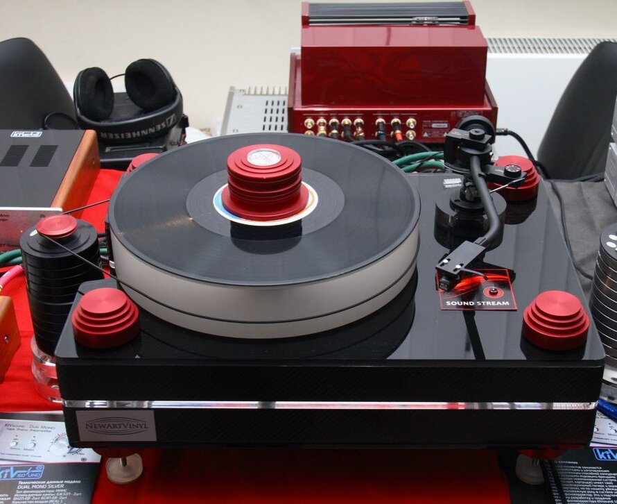 Основателями Дизайн-студии NewArtVinyl являются художники и мастера ювелирного дела - Валерий Скориолли и Дмитрий Мороз. А когда два творческих человека с золотыми руками собираются вместе, чтобы сотворить виниловый проигрыватель, то получается то, что получилось — посетители выставки Российский Hi-End по полчаса стоят, разинув рты, у стенда NewArtVinyl и пожирают его глазами. Красота - страшная сила!