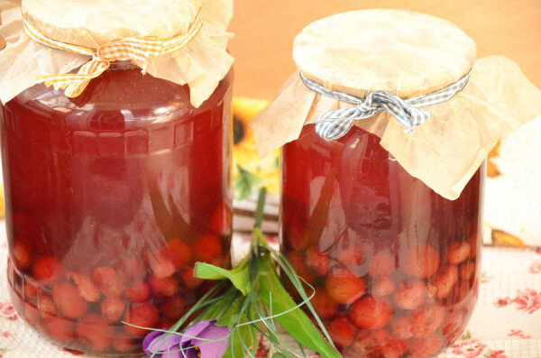 Предлагаю вам заготовить на зиму вот такой вкусный, летний напиток из черешни, вишни и земляники. Такой напиток будет вас согревать холодными зимними вечерами, летними воспоминаниями о солнышке и тепле. Компот я всегда закрываю как бы на глаз, пропорции примерные. Для начала подготовим трехлитровые бутыля: хорошо моем, потом выжариваем на пару. Подготавливаем черешню, моем ее, перебираем кладем в каждый бутыль, примерно по пол килограмма. Черешню можно брать любую: желтую, красную, розовую. Тоже самое проделываем с вишней: моем, отрываем хвостики и выкладываем в бутыля, примерно по 200-300 грамм. Чем кислее вишня, тем кладите ее меньше или тогда кладите больше сахара. В каждый бутыль кладем стакан сахара и добавляем землянику, грамм по 200. Кипятим в кастрюле воду, из расчета 2,5 литра на бутыль. Кипятком заливаем ягоды и быстро закатываем крышкой. Переворачиваем, смотрим, чтобы крышка хорошо затянулась, немного встряхнем, чтобы сахар растворился. Ставим бутыля на подстилку и укрываем