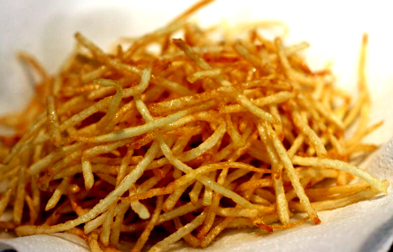 Картофель пай - если вы не слышали такое название и тем более не пробовали такое блюдо, вы многое упустили. Ведь такая картошечка получается очень оригинальной и вкусной, подходит к любому блюду и быстро готовится. И уж точно удивит ваших гостей привлекательным внешним видом. Ингредиенты Способ приготовления Картофель моем и очищаем. Натираем на специальной терке. предназначенной для приготовления моркови по-корейски. Натертый картофель выкладываем в дуршлаг и промываем под водой. Даем воде стечь. Хорошенько просаливаем. Выкладываем картофель небольшими порциями во фритюр или кастрюлю с подогретым растительным маслом. Обжариваем буквально несколько секунд до появления золотистой корочки. Перед подачей на стол на пару минут выкладываем на салфетку (она впитает излишки масла). Подаем горячим или холодным, с котлетками или пивом, на обычный обед или на праздничным стол. Приятного аппетита!
