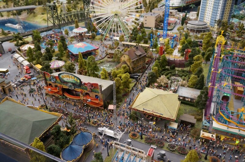 О том, как в этот раз меня занесло в Питер, расскажу отдельно. История интересная. Как ни странно, виноват в этом Великий Новгород . Но сейчас о другом. Приехав в Питер и выспавшись, я первым делом отправилась туда, куда не получилось попасть в ноябре 2016 года. В общем этого момента я ждала почти три года! Гранд Макет Россия - частный музей в Санкт-Петербурге, представляющий собой макет, выполненный в масштабе 1:87, площадью 800 м², где объединены собирательные образы регионов Российской Федерации. Входя в зал, ты оказываешься на воображаемом Урале. Направо Восток, налево Запад. Я отправилась на Восток. Еще раз хочу отметить, что макет представляет собирательный образ России. За исключением, разве, Москвы и Санкт-Петербурга. Поэтому сказать какая это из ГЭС - сложно. Возможно, похожий вокзал есть в Магнитогорске или Иркутске. А может в Красноярске или Чите. Впрочем, как и храм. Кемпинг, разбитый на берегу Байкала. Почему-то мне кажется, что внизу была подпись - озеро Байкал.