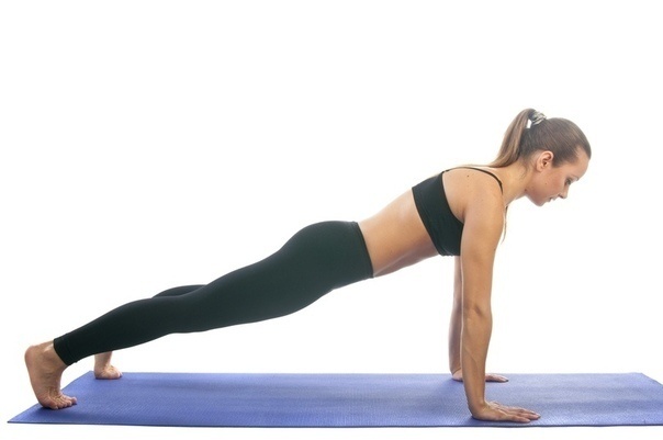 Кумбхакасана или планка включит в работу практически все тело и особенно - пресс. Для начала встань на колени, руки поставь перед собой. Затем медленно отведи ноги и стань в позу для классических отжиманий.