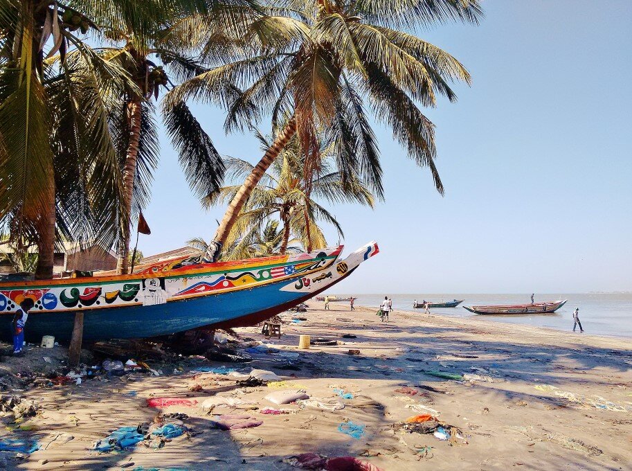 Прогулку начнем с пляжей столицы Гамбии, колониального городка Банжул. Здесь нет туристов, а местное население не интересуется купанием в океане. Кстати, по себе знаю: живя вот уже много лет возле моря, купаюсь при этом исключительно редко, кажется в последний раз - в прошлом году. Так вот, взглянем, как выглядят пляжи гамбийской столицы -