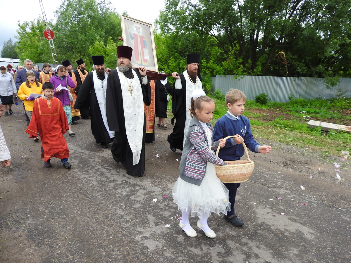 Волжский Крестный ход прибыл к финальному пункту своего назначения - в Калязин. Калязинцы встречали паломников и святыню - икону Благоверной княгини Иулиании Вяземской и Новоторжской на стыке трёх рек - Жабни, Пуды и Волги на причале яхт-клуба "Калязин". Путь по городу до храма Вознесения калязинские дети устилали перед святой лепестками шиповниковых роз.
