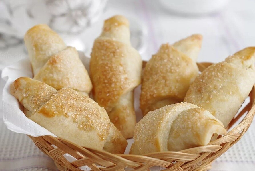 У меня без начинки, сразу ставим в духовку на 15-20 минут при 180 град, когда рогалики начнут чуть зарумяниваться вытащить и почти сразу же каждый обсыпать сах. пудрой…пудру не жалейте…они пока горячие пропитаются и будут нежными просто во рту тают! (от себя- Тесто положила в целлофановый пакет и в холодильник где-то на два часа, для начинки взяла земляничное варенье, слила сироп и добавила кокосовую стружку, дрожжи использовала сырые).