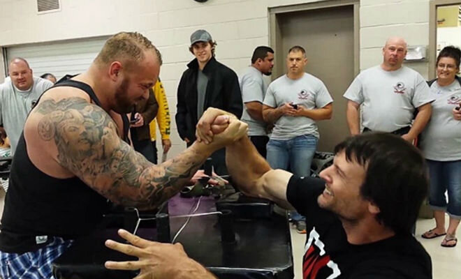 Самый сильный человек планеты не побоялся выйти против чемпиона армрестлинга. Хафтор Бьернсон, тот самый Гора из Игры Престолов, хвастает своими мышцами постоянно, но вызов двукратного чемпиона мира стал испытанием и для него. Девон Ларратт весит в два раза меньше Горы. Но испуганным он вовсе не выглядит — за плечами атлета множество побед. И титул самого сильного человека планеты Ларратта тоже не слишком-то напугал. Видали парней и покрупнее! Финал схватки вышел потрясающим по накалу. Победителя мы называть не станем: Ларратт показал поединок, который лучше видеть своими глазами. Понравился материал? Ставьте лайки и подписывайтесь на наш канал в Дзене.