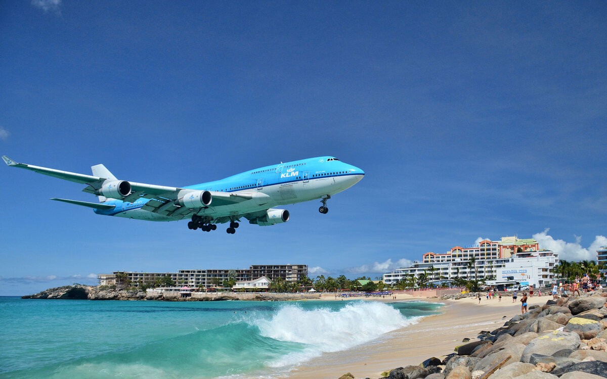 Махо Бич (Maho Beach) возможно самый необычный пляж мира. Он расположен на нидерландской части острова Сен-Мартен в Карибском море. Это единственный пляж на планете, где всего в нескольких метрах над головой пролетают огромные пассажирские лайнеры. Махо Бич находиться рядом с международным аэропортом принцессы Джулианы (PrincessJulianaInternationalAirport). Длина взлетно-посадочной полосы аэропорта составляет всего 2180 м. Этого достаточно для средних по размерам самолетов, но недостаточно для дальне магистральных пассажирский самолётов, таких как Airbus A340 или Boeing 747, которые также прибывают в аэропорт. Именно из-за недостаточной длинны взлетно-посадочной полосы самолеты вынуждены заходить на посадку очень низко, практически задевая головы отдыхающих на пляже туристов. Maho Beach — это одно из лучших мест на наблюдения за низколетящими самолетами. Многие называют Махо бич самым опасным пляжем в мире, однако это не так. Хоть он и входит в десятку самый опасных, но скорее это