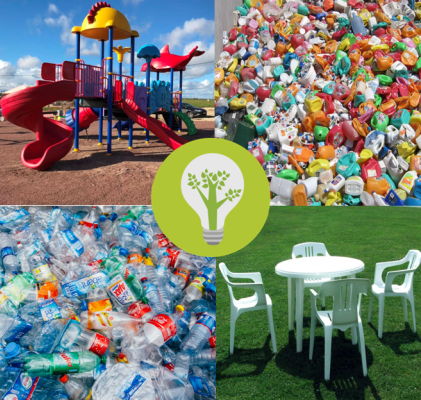 Пластиковая мебель сейчас так же популярна, как и предметы интерьера, изготовленные из других видов материалов. Пластик позволяет дизайнерам создавать самые различные формы и цветовые решения предметов мебели, среди которых можно встретить эксклюзивные образцы. Не уступают в спросе и детские игровые комплексы, горки, песочницы. Игровые формы изготовленные из вторичного пластика безопасны для детей, не имеют острых выступов, а значит ребенок не получит травм.