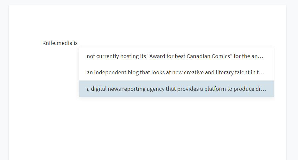 В сети появилась новая версия алгоритма GPT-2, который угадывает продолжение текста. Работает она как клавиатура на смартфоне, только предлагает вставить не одно слово, а целое предложение. Чтобы включить подсказку, нажмите Tab, чтобы выключить — Esc.