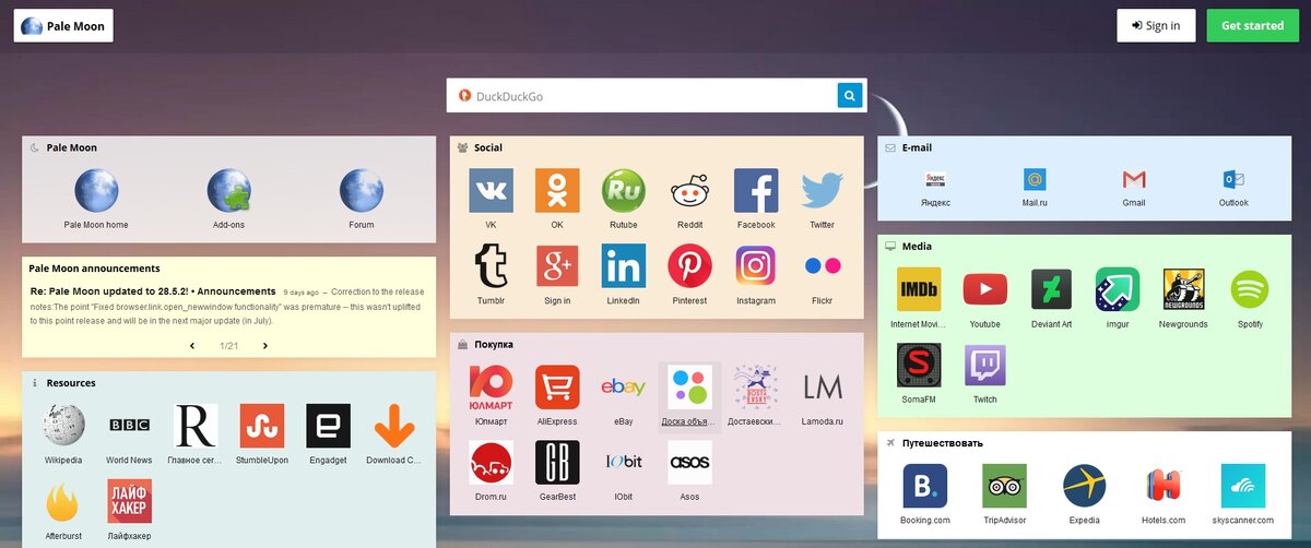 Приведу небольшой обзор для компьютерного браузера Pale Moon.