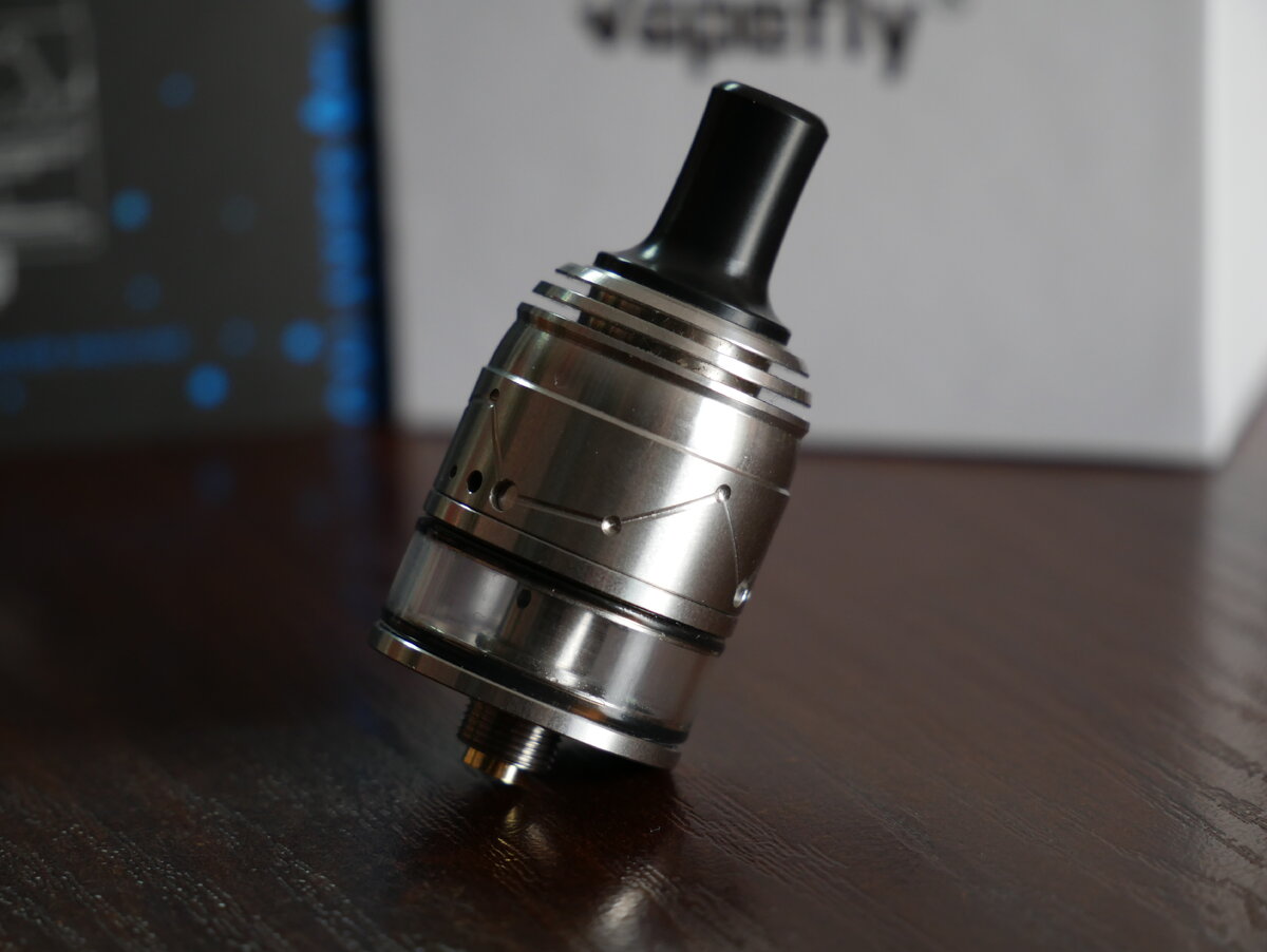 У меня не так много MTL устройств, потому что я не употребляю никотин, и, как следствие не стремлюсь к имитации сигаретной затяжки. Но все же имею интерес к разного рода ощущениям от парения, и MTL стороной не обошел. Galaxies MTL RDTA у меня уже около полугода, использую ее, когда не хочется много пара, а так, посмаковать. Больше всего мне нравятся на этой РДТА чайные жидкости. Интересный суховатый эффект получается во рту, немного вяжущий. В комплекте два дриптипа (тот что на фото и второй уродливый, его можно не считать), кусочек ватки, два бесполезных микрокойла, запасные винты, стекло и Сквонк пин. База удобная, правда только под койлы, намотанные против часовой стрелке, но не беда, как видите я и обратный поставил. Интересная и удобная система заправки с клапаном. Стальной цилиндрик с отверстием на фото выше. Прижимаете его носиком и наполняете резервуар. На куполе есть куча отверстий разного диаметра, которые могут работать как поодиночке, так и попарно. Такой вариативности рег