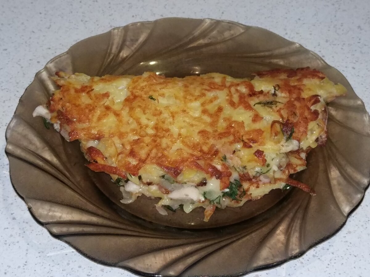 Вкусное и красивое блюдо из обычных ингредиентов. Нравится всем без исключения! А готовится очень быстро и просто. ИНГРЕДИЕНТЫ: • Картофель - 5-7шт. • Куриная грудка - 400 гр. • Яйца -3 шт. • Лук - 1 шт. • Мука - 2 ст.л. • Сыр - 60 гр. • Перец черный (молотый) – по вкусу. • Соль – по вкусу • Зелень - по вкусу СПОСОБ ПРИГОТОВЛЕНИЯ: Для начала нарезаем зелень и натираем сыр. Обжариваем мелко нарезанный лук на небольшом количестве растительного масла до золотистого цвета. Куриное филе нарезаем соломкой, после обжариваю до готовности и солю по вкусу. Вы можете добавить свои любимые специи, я обычно добавляю смесь перцев . Картофель натираю на крупной терке. Солю, перемешиваю и даю постоять несколько минут, затем отжимаю от сока. Добавляю яйца и муку, все перемешиваю. На сковороде разогреваю немного растительного масло. Выкладываю картофельное тесто и распределяю ложкой. Когда картофельный блинчик подрумянился, блинчик переворачиваю. На половину блинчика выкладываю начинку: жареное курин