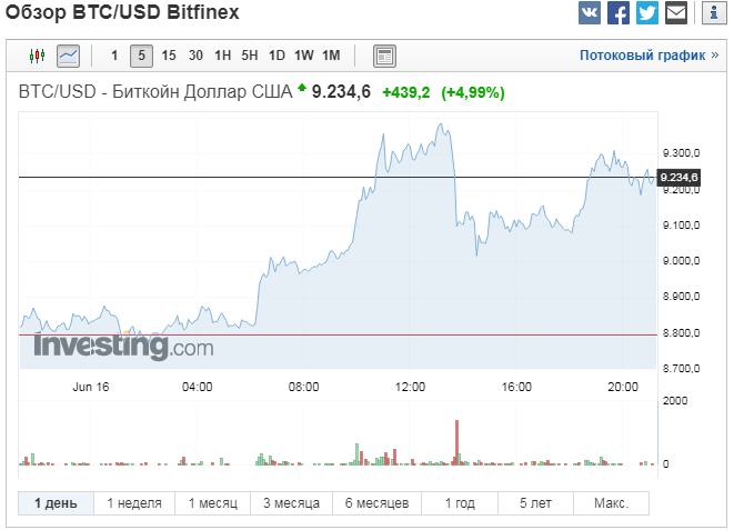 Курс биткоина в последнее время продолжает расти и превысил отметку в 9200 долларов за одну монету. Аналитики сообщают о благоприятной атмосфере для дальнейшего роста. Складывается хорошая возможность войти сейчас на биржу и начать зарабатывать на изменении курса Так, только за прошедшие сутки курс вырос на 5%. Таким образом, вложив 10000 рублей в начале дня уже к концу можно было получить 10500 рублей. Тем, кто заинтересовался рынком криптовалют рекомендую зарегистрироваться на бирже https://alpari.com/ru. Здесь можно изучить основы торговли на финансовых рынков, потренироваться на учебном счёте и переходить к реальному зарабатыванию денег за компьютером и смартфоном. Кликай по ссылке https://alpari.com/ru и начинай. Я буду очень рад, если поставите "палец вверх" и подпишитесь на канал, а также поделитесь с друзьями этой важной информацией в социальных сетях. В свою очередь буду чаще публиковать интересную и полезную информацию из мира финансов.