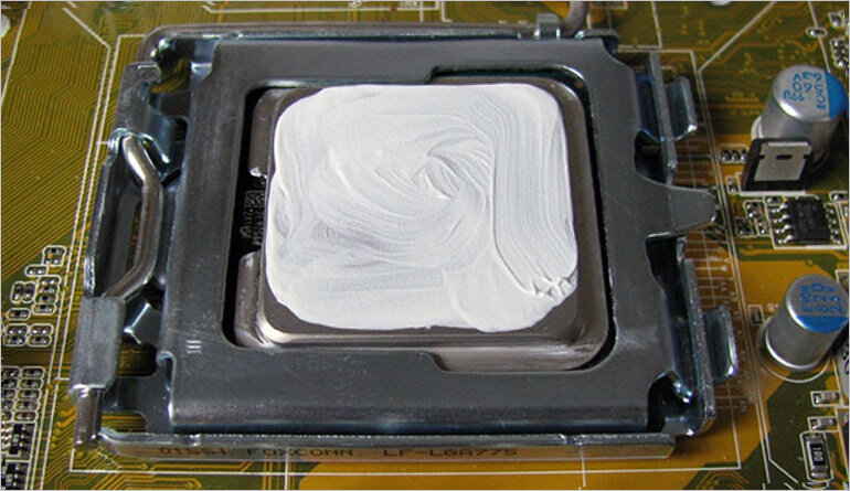 Как заменить термопасту на процессоре компьютера? Итак, как менять термопасту самостоятельно? Прежде всего, ее надо приобрести. Это лучше сделать в специализированных магазинах, так как можно нарваться на дешевую подделку. Выпускается она в тюбиках, баночках или шприцах. В комплект может входить и лопаточка, которая пригодится в дальнейшей работе. При подготовке к работе необходимо снять боковую крышку отключенного системного блока ПК. Далее необходимо отсоединить от разъема на материнской плате кабель питания кулера. Следующий шаг – снятия блока охлаждения. Для разных моделей могут быть различные крепления (рычаги, защелки, винты) . Незнающему человеку разобраться поможет техническая документация материнской платы. Потом надо обязательно тщательно убрать остатки старой пасты и с процессора, и с радиатора с помощью салфеток. Если есть подсохшие фрагменты пасты, надо аккуратно воспользоваться растворителем, например, жидкостью для снятия лака. Никакого соскабливания! Когда контактные п