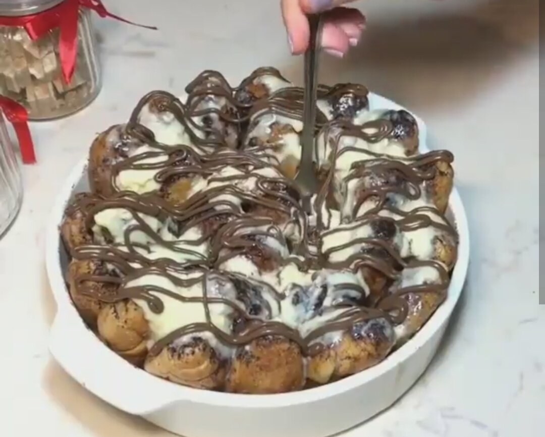 Обновляю рецепт из архива для тех, кто просил что-нибудь быстрое на ифтар к чаю🥰 ____________ Безууумно нежно, вкусно! Не подобрать слов, чтобы описать этот вкус🤤 Просто попробуйте и ваша жизнь разделится на «до» и «после»😁 А на сколько это просто вы видите! _____________ Просьба поддержать рецепт всем, чем не жалко😁❤️ ______________ У меня подобная идея была в голове около 2 месяцев, т.к я безумно люблю синнабоны, но мне лень их готовить. Потом наткнулась на видео, где готовят подобное и вместо корицы с сахаром, посыпают какао. Я в свою очередь попробовала смешать корицу с какао. Получилось пальчики оближешь. 🥐🥐🥐Ингредиенты🥐🥐🥐 Мини круассаны Сливочное масло Какао Корица Для помадки: Слив.масло Сыр маскарпоне Сахарная пудра Шоколадно-ореховая паста Количество на ваше усмотрение Я взяла круассаны с шоколадной начинкой. Укладываем их в форму для запекания, смазываем растопленным слив.маслом и посыпаем смесью какао и корицы. Отправляем в заранее разогретую духовку и печем