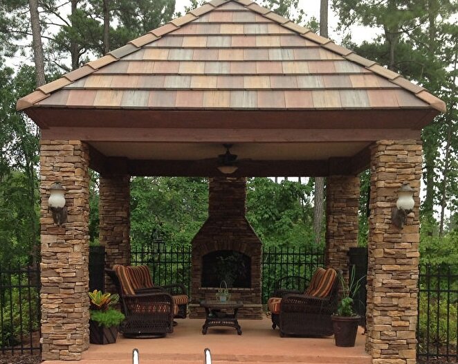 Имея загородный дом, коттедж или дачу можно отдыхать от городской суеты в свободное от работы время. Отличается загородный дом от дачи тем, что в нем можно проживать постоянно. Поэтому важно на участках, прилегающих к дому, создать все условия для полноценного отдыха, и в этом немаловажную роль может сыграть беседка из камня. Она должна быть эстетично вписана в интерьер участка и самого дома. С чего начинать строительство беседки? Каменные беседки, как и любое строительство, надо начинать с проекта. Проект составляется таким образом, чтобы строение получилось практичным, многофункциональным, удобным и красивым. Для того, чтобы иметь представление о количестве материала, необходимого для постройки, надо: Важно правильно выбрать место, где будет стоять беседка каменная, в зависимости от ее предназначения. Большая беседка для встречи гостей и семейных праздников, будет уместна рядом с домом. Подальше от дома в тени деревьев, хорошо поставить небольшую беседку для уединенного отдыха. Како
