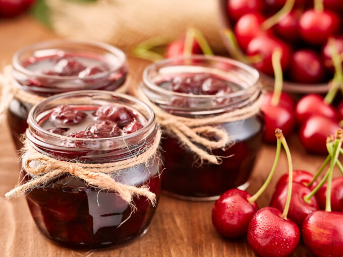 Если вам несколько приелся вкус обычного вишневого варенья, попробуйте приготовить его из вишни жареной. Вкус этого блюда получается более карамельным, ярким и насыщенным. Недостаток заготовки заключается лишь в том, что за один раз вы можете приготовить ровно столько, сколько ингредиентов поместится в вашей сковороде. Итак, на одну порцию нам потребуется 500 г вишни без косточек и 400 г сахара. Моем вишню, удаляем косточки. На горячую сковороду высыпаем сахар, поверх него – вишню. Готовим на среднем огне, пока сахар полностью не растворится, периодически перемешиваем. Оставляем сковороду на уменьшенном огне еще на 15 минут, снимаем пену по мере необходимости. Разливаем горячее варенье в стерилизованные банки, закатываем. Храним, как обычно, в прохладном месте. Следует учитывать, что при остывании варенье немного загустеет.