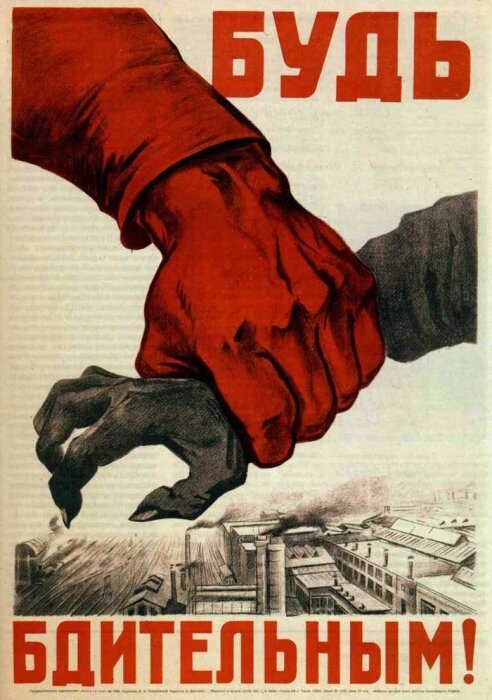 Советские плакаты продолжают интересовать многих. Я уже несколько раз делала небольшие подборки из тех, что мне наиболее знакомы, но всегда с удовольствием готова затронуть эту тему снова. Недавно в Петербурге в одной из сетевых столовых снова наткнулась на плакаты времен СССР, которые были развешаны на стенах. Там, конечно, больше о еде и продуктах было, но внезапно попался один про "не болтай". Уж не знаю, к чему он там, но решила еще и другие советские плакаты эпохи СССР про бдительность посмотреть. В интернете куча сайтов, посвященных плакатам СССР. Можно запросто отыскать всю инфу по их авторам, периодам развития и тематикам. Интерес к СССР вообще в последнее время зашкаливает. Кругом музее новые появляются, магазинчики сувениров, рестораны и кафе стилизуют под то время. "Будь зорким на посту"!