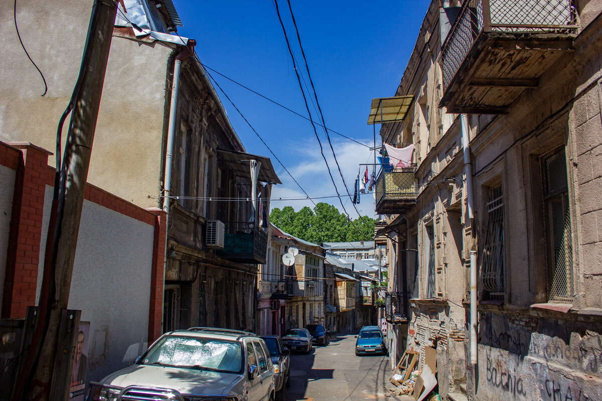 Конечно, топовые достопримечательности посещать нужно. Но также нужно бывать и в не туристических местах, чтобы посмотреть реальную жизнь местного населения. Обычно это даже интересней. Сегодня прогуляемся по не туристическому Тбилиси. Притом всё это не какие-нибудь окраины, а самый центр, окрестности станций Авлабари и Руставели! Вот, типичные жилые улочки. Сохранилось много табличек ещё советских времён с дублированием на русском языке. Довольно типичный для центра дворик. Крутые двери! Наверное, если б в Грузии было побольше денег в 90-00 гг, то всю подобную красоту уже давно заменили бы пластиковым непотребством, как это происходит у нас повсеместно. Кстати, подъезд жилой! Но сам дом близок к обрушению. Если бы не металлические конструкции, поддерживающие его, то давно бы уже развалился! Этот дедушка, торговец овощами-фруктами, когда увидел, что я его фотографирую, заставил выпить с ним вина. При этом даже не пытался что либо продать. Ателье. Очень аутентично выглядит! Классный