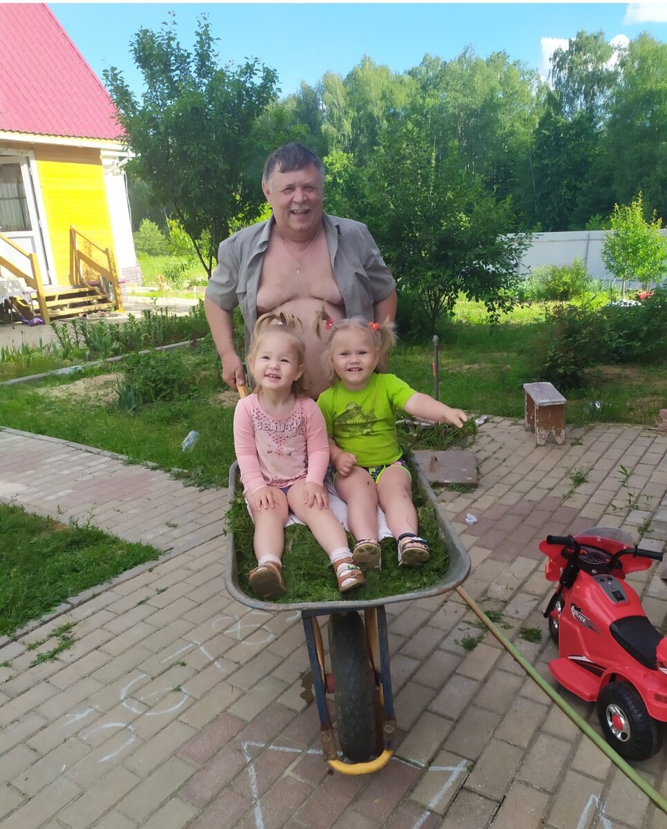 У нас совместный участок 20 соток, с маминым братом, есть где разгуляться. К ним тоже приехала внучка. Они одного практически возраста, нам 1,7, им 2,2 года.