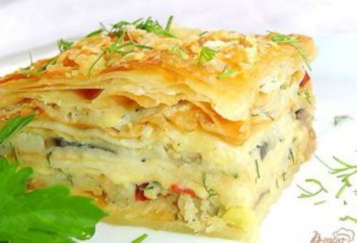 Этот рецепт мне где-то попадался, но, к сожалению, я не записал автора. Горячий Наполеон просто восхитительное блюдо. Мне это блюдо очень понравилось. Попробуйте и Вы! Ингредиенты: упаковка слоеного бездрожжевого теста; картофель 3 шт.; сметана 200 гр.; репчатый лук 3 шт.; куриный фарш 200-300 гр.; шампиньоны 300 гр.; твердый сыр 200 гр.; черный молотый перец и соль по вкусу; масло для жарки по необходимости. Приготовление 1. Выпечь коржи в духовке. 2. Нарезать лук полукольцами, грибы – дольками. 3. Выложить на сковороду мясной фарш, лук и грибы и обжаривать до золотистого цвета. 4. Выложить содержимое сковороды на бумажную салфетку, чтобы избавиться от лишнего жира. 5. Отварить картофель, сделать пюре, добавив сметану. 6. Смешать картофельное пюре с ясной массой, добавить молотый перец и соль, хорошо перемешать. 7. Застелить противень пергаментом, формировать Наполеон. 8. Посыпать Наполеон тертым сыром и выпекать при температуре 200 град. примерно 15 мин. Приятного аппетита!