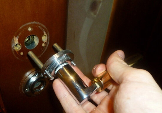 Закрученная на саморезы ручка или петли в деревянной двери со временем расшатывается, шурупы выпадают, ручки и петли отваливаются. Что же делать? Саморезы большего диаметра тут не помогут, во-первых, потому, что не влезут в отверстия на металлической детали, но это можно исправить, увеличив диаметр отверстий, во-вторых, и саморезы (шурупы) большего диаметра вскоре также расшатаются. Я же предлагаю более надежный и долговечный вариант. Я рассверливаю отверстия в дереве шире, вбиваю туда плотно чопики, желательно сделанные из твердых пород дерева. Чопики перед забивкой в отверстия смазываю столярным клеем, можно ПВА. Подрезаю чопик заподлицо, даю 10-12 часов высохнуть клею. После чего вкручиваю саморезы или винты на место. Все держится очень прочно и на долго. Это капитальный вариант, а что если нет ни времени, и инструмента для вбивания чопика, а присобачить ручку нужно? Тогда можно воспользоваться простым и быстрым вариантом, но временным, не долговечным. Идея заключается в плотной наб