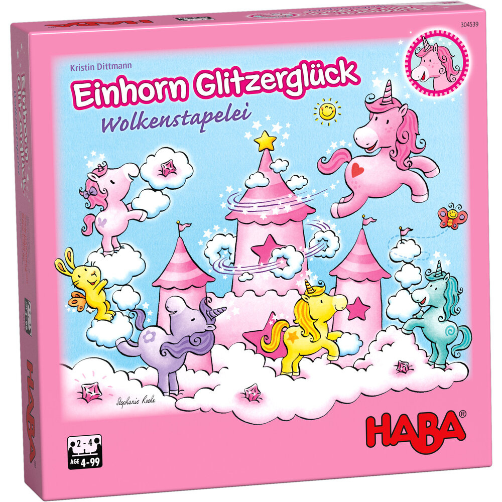 4 единорога: Glitterluck (ярко-розовый), Звездная пыль (желтый), Чудо цветок (фиолетовый), и Магический вихрь (бирюзовый), 1 малыш-единорог Розали (розовый), 1 облачный замок, 5 больших белых облаков, и 5 небольших голубых облаков, 1 кубик, 1 облачные игровое поле, 16 двухсторонний облаков- плитка, 10 облачных кристаллов 🌈Как играть: Поле размещаем по середине, вокруг раскладываем 16 тайлов-облаков светлой стороной вверх. Все остальные компоненты хранятся рядом