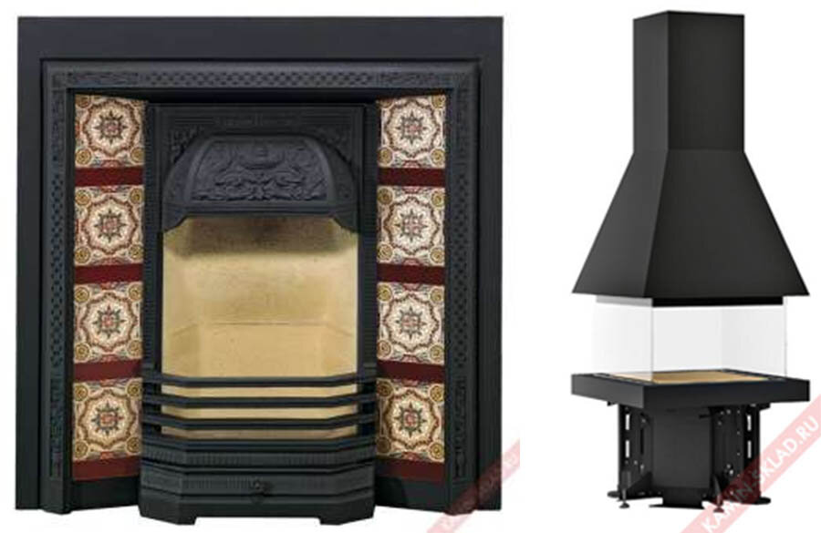 бывает стальной или чугунный, пламярассекатель (дефлектор – отбойник, отражатель пламени) делается из вермикулита. Вермикулит обладает высокой огнестойкостью и прекрасно отражает тепло. Внутренние вставки защищают стальной корпус и не позволяют стали прогорать. Стальную топку можно топить непрерывно, несколько суток подряд. Срок службы такой топки в 2-3 раза больше, чем у чугунной. То, что корпус сварной значительно увеличивает герметичность топки (до 98%). Это гарантирует нам хорошее, регулируемое горение, постоянно чистое стекло, экономное использование дров, отличный обзор огня, т.к. размеры стекол в стальных топках значительно больше по сравнению с чугунными. Стальные топки нагреваются быстрее, что в зимний период особенно актуально.