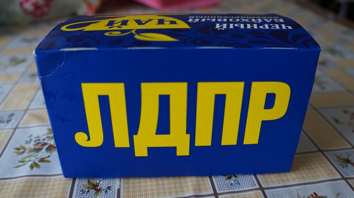 Всем привет. Сегодня хочу вам рассказать о необычном чае, который нельзя купить в обычном магазине, но можно получить совершенно бесплатно, если у вас есть знакомые активисты партии «ЛДПР». У меня таких знакомых нет, поэтому до недавнего времени я даже не подозревал о существовании такого чая. Каково же было мое удивление, когда я обнаружил у себя на кухне чай с огромной надписью "ЛДПР". Разве можно устоять от соблазна попробовать этот чай? Как-никак это чай от партии ЛДПР, которым бессменно руководит сам Владимир Вольфович Жириновский. Чай упакован в обычную картонную коробку, которая окрашена в фирменный синий цвет партии. Почти везде имеется узнаваемая символика партии. Вся информация о чае находится на дне упаковки. Всего в коробке 20 пакетиков с чаем. Каждый пакетик запакован в отельный водонепроницаемый пакетик. И это очень удобно, если нужно взят чай с собой. А вот вкус чая меня совершенно не удивил. Обычный дешёвый чёрный чай, который можно купить в любом прод