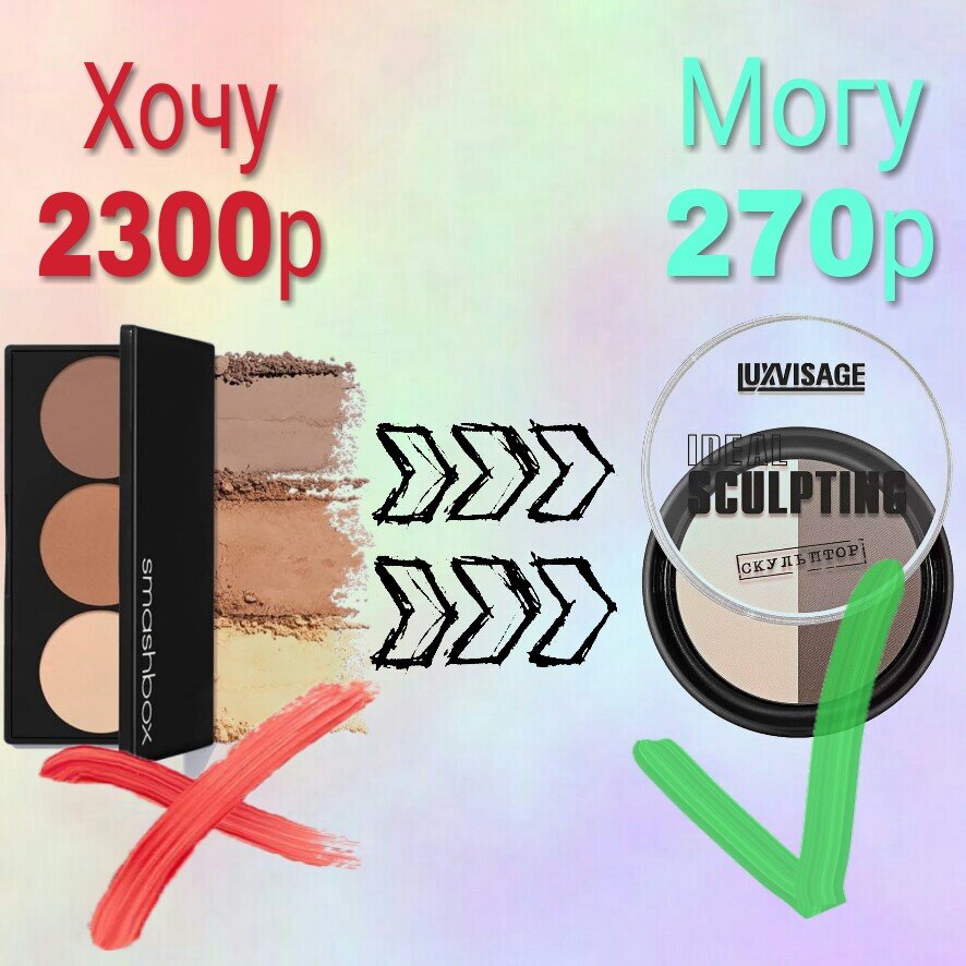 Контуринг лица-это то, без чего не могут жить многие девчонки, ведь даже если нанести ВВ крем, сделать легкий контуринг и брови-можно уже выглядеть как богиня! Поэтому я решила сегодня сравнить 2 средства для контуринга, которые на мой взгляд очень сильно похожи по текстуре, качеству, нанесению и по стойкости, но совершенно разные по цене! • Первая палеточка от #snashbox, имеет 3 оттенка, очень приятная текстура, круто ложится на кожу, не рыжит, можно наслаивать и держится мега круто! Самый тёмный оттенок довольно темноват для меня, я иногда использовала его как тени, но летом и контуринг делала им, единственный минус-цена, ну 2300 за палетку мне жалко отдавать, тем более, когда можно купить палетку такого же качества и в 8,5 раз дешевле. • Ну и его полный аналог, палетка от @luxvisage_belarus за 270 рублей, имеет 2 цвета: тёмный для контуринга и светлый для высветления выпуклых участков, самая крутая палетка идет под оттенком 03. Темный цвет очень красивый, деликатный, имеет серый по