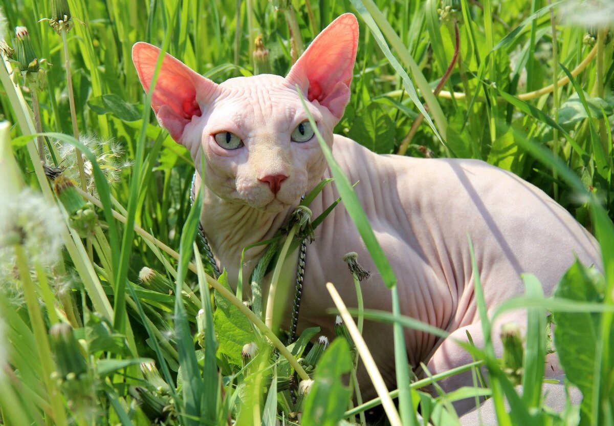 Сфинкс кошка – одна из древнейших пород на Земле. В Древнем Египте, где существовал кошачий культ, лысые кошки обитали в покоях фараонов, в то время как простые египтяне довольствовались камышовыми котами и сервалами. Египетские гены со временем затерялись на земных просторах и проявились в Канаде только пятьдесят лет назад. С этого момента началась новейшая история породы кошек сфинксов. Кошки породы сфинкс обладают хорошо развитой мускулатурой, «одетой» в лысую нежную кожу. Небольшая голова украшена огромными ушами — локаторами и слегка раскосыми глазами. Температура тела настолько горяча, что многие хозяева спят со своими питомцами, используя их, подобно древним ацтекам, в качестве «грелки». Взрослые «грелки» достигают 30 – 40 см в высоту и весят до 5 кг. Забавные и смешные кошки сфинксы окрашены во все цвета радуги. Встречаются белые, черные, шоколадные, голубые, кремовые, черепаховые, лиловые коты сфинкс. К настоящему времени заводчиками выведены три вида этой породы: канадский с