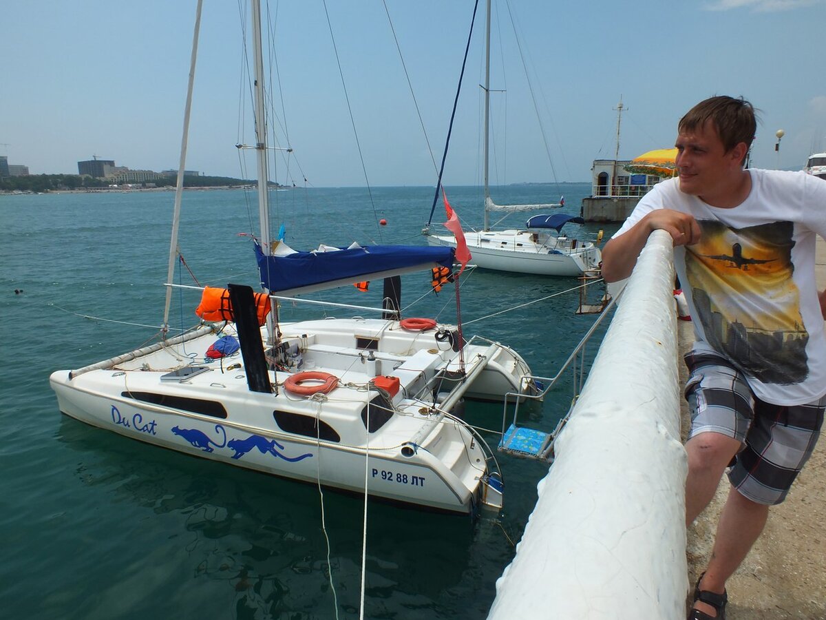- Внимание! Дамы и господа, рад приветствовать вас на борту катамарана "Du Cat"! Огромная просьба: судно парусное, вы видите огромное количество веревочек и шнурочков, пожалуйста, не трогайте их! Экипажу помогать не нужно ни в коем случае!