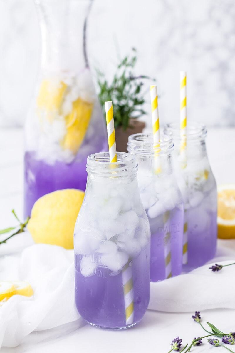 Когда обычный лимонад с мятой, огурцами или лимоном приелись — нужно найти что-то очень яркое, вкусное и необычное. Я подобрала красивые и действительно вкусные (проверено лично) лимонады для вашего знойного дня. Читайте рецепты и вперед в магазин за продуктами! Лимонад с лавандой Всю большую популярность завоевывает лаванда. И это не случайно. Лаванда приятна на вкус и аромат, содержит в себе много полезных свойств, а его цвет просто божественен. Любой гость захочет попробовать такой фиолетовых напиток и обязательно поделиться им в социальных сетях. Итак, не будем задерживаться, вот рецепт: 1 стакан воды Половина стакана сахара 1 стакан лимонного сока (примерно 6 лимонов) 3 стакана охлажденной газированной воды (можно обычную, можно спрайт, но если второй вариант - уменьшайте количество сахара) 2 капли эфирного масла лаванды или 1 столовая ложка сушеной лаванды или 10 бутонов свежей лаванды Капля фиолетового пищевого красителя (по желанию) ВНИМАНИЕ! Убедитесь, что эфирное масло п