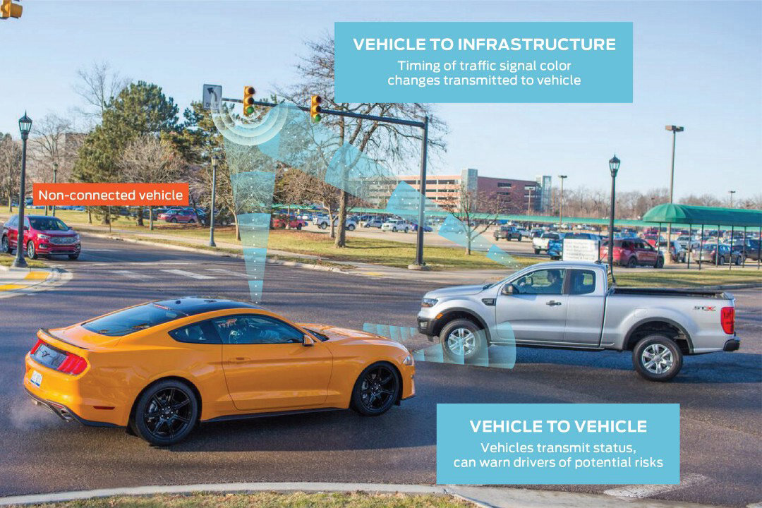 Ford продолжает изучать возможности использования технологии C-V2X (Cellular Vehicle-to-Everything) - беспроводной системы обмена данными между транспортными средствами и объектами дорожной инфраструктуры. Разработки на основе C-V2X призваны повысить безопасность и эффективность дорожного движения, а также способствовать развитию автономных автомобилей. На прошлой неделе в Вашингтоне в рамках ежегодной встречи Американского общества интеллектуального транспорта (Intelligent Transportation Society of America), Ford продемонстрировал два проекта в этой области. Первый – это специальная установка, которая будет располагаться у дороги и обеспечивать связь между автомобилями и другими участниками дорожного движения (пешеходами, велосипедистами и теми, кто ездит на электросамокатах) с помощью различных беспроводных технологий. Второй проект – это бесперебойная система на основе блокчейн-технологии, помогающая автомобилям договариваться о праве проезда перекрестков для обеспечения эффективнос