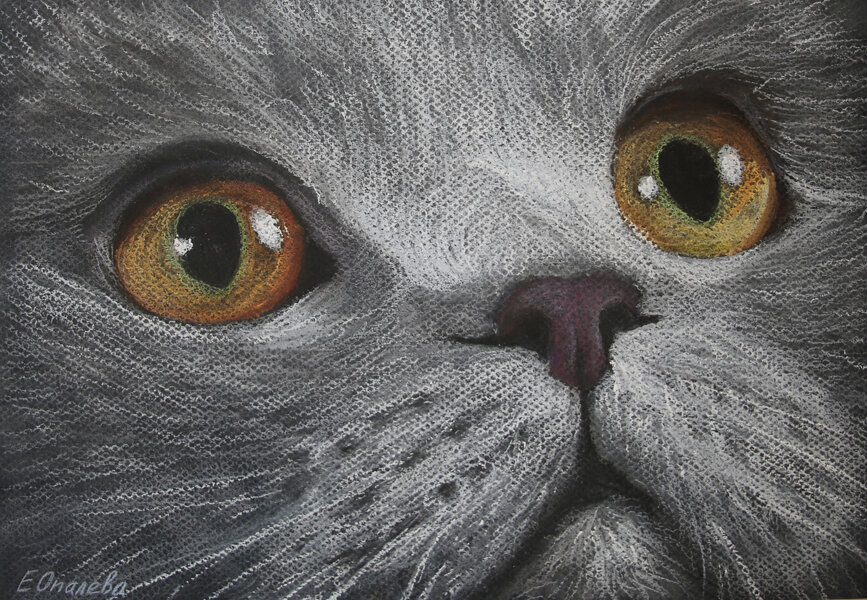 А кошачьи глаза - это отдельный целый мир, и часто очень противоречивый. Мир любви и коварства, нежности и осторожности, озорства и, конечно, наслаждений - уж в получении удовольствия коты большие специалисты. Однажды мне довелось рисовать уж очень большого кота - а оказалось, что глаза у него очень нежные и даже робкие. Иногда кажется - смотришь в их глаза, чтобы рассмотреть их души, а видишь там отражение своей собственной... А что вы видите в глазах своих кошачьих? Есть там душа?
