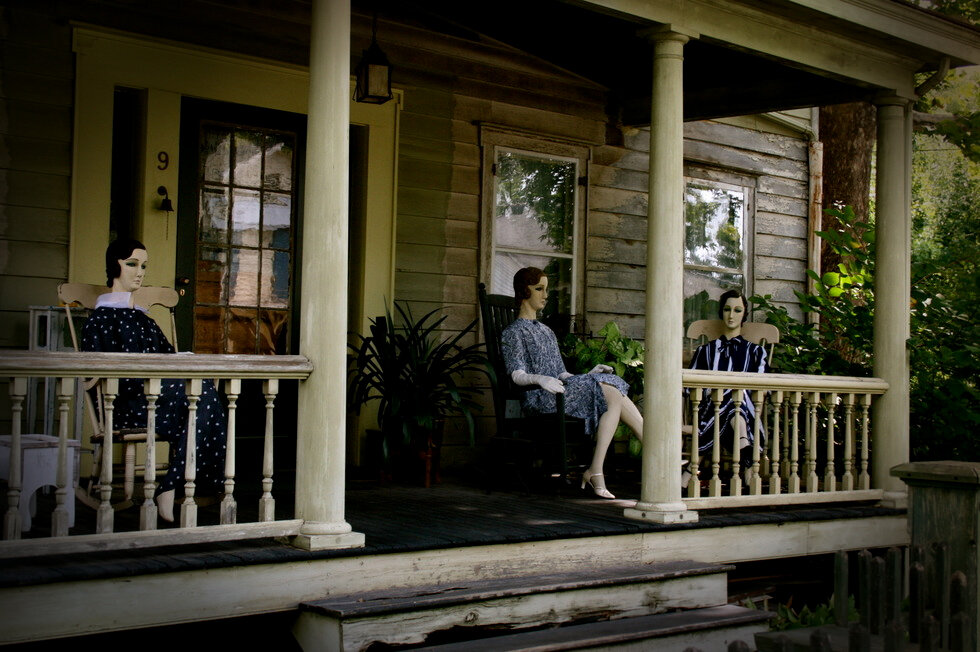 Если вы поедете по шоссе рядом с заброшенным аэродромом, вы сможете увидеть заброшенный дом, который на удивление очень ухожен. Трава на газоне скошенными, розы цветут и пахнут, старый дуб стоит перед домом как охранник. Но дом совершено пуст, жители давно покинул этот дом. Во всей этой процветающей красе странно лишь одно — это манекены. Манекены сидят мирно в доме, на крыльце и будто смотрят в даль. Их таинственное превосходство распространяется на всю округу, он будто хозяева все городка. Каждый раз их мимика и положение меняется, будто они живые. Манекены, которые сидят в доме, создают вид, будто они ужинают или обедают, те что сидят на крыльце — мило беседуют. Считается, что в них вселил