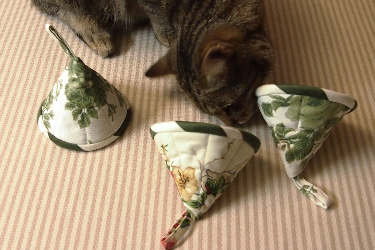 Расскажу, как я сшила популярную кухонную текстильную вещицу - прихватку-колокольчик. Вернее - три прихватки.