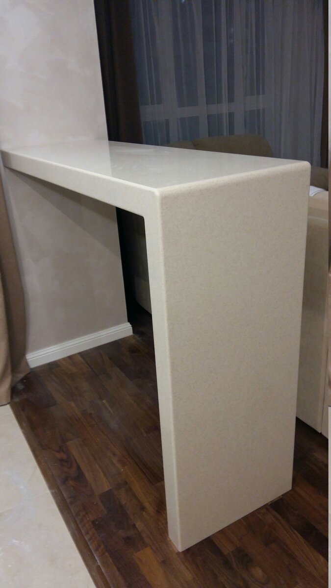 Конгломерат, также называемый синтетическим камнем, сделан из молотого мрамора или гранита, склеенного полиэфирной смолой. Вершины, сделанные из этого материала, уступают по прочности гранитным и композитным столешницам - они устойчивы к влаге, высоким температурам и химическим веществам, но их легко поцарапать или механически повредить. Стеклянная кухонная столешница выглядит современно и абсолютно не впитывает влагу, однако к компании с плитой и кастрюлями можно мириться только с стеклом из закаленного стекла, не склеенным (между стеклянными панелями есть фольга).