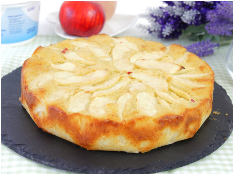 Достаточно простой и быстрый рецепт, без добавления масла. Несмотря на это, у вас получится нежный, сладкий и ароматный пирог. Можете добавить щепотку корицы. Нам потребуется: мука - 200 гр. сахар - 150 гр. йогурт натуральный белый - 200 гр. 2 яйца 1 лимон (сок и цедра) 1 ст. ложка коричневого сахара 1 пакетик разрыхлителя 3 яблока ванилин Для начала очистить яблоки, 2 шт. нарезать кубиками, а одно ломтиками. Полить соком лимона. В миске взбиваем яйца, сахар, ваниль и цедру лимона, пока смесь не станет воздушной и пушистой. Затем добавляем муку и разрыхлитель, аккуратно перемешиваем. После чего добавляем йогурт. Наконец соединяем яблоки с нашим тестом. Выливаем нашу смесь в смазанную маслом форму, украшаем, дольками яблок, посыпаем коричневым сахаром и выпекаем в духовке около 45 минут, предварительно разогретой до 180 гр. Наш пирог готов, даем остыть и наслаждаемся. Приятного аппетита.