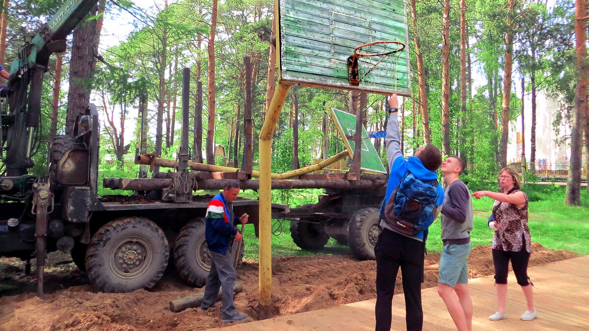 У любителей баскетбола из посёлка Подосиновец появилось место для тренировок и соревнований: руками группы энтузиастов на местной волейбольной площадке смонтировано баскетбольное оснащение. Баскетбольные щиты, как пояснила замзав райотделом культуры Марина Мохина, были передислоцированы с территории новой хоккейной коробки. Работу по центровке столбов взяли на себя члены инициативной группы, они же вызвались нанести разметку на игровое поле. Фото: vk.com/znamya43podos