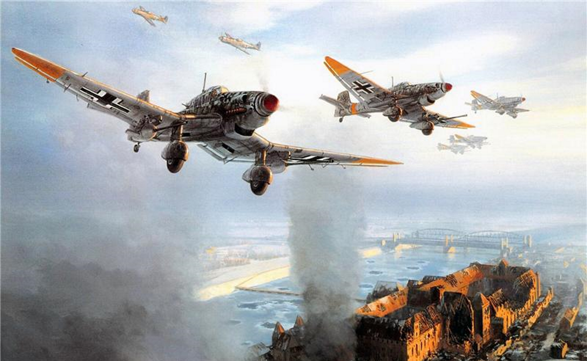 Пикирующий бомбардировщик фирмы «Юнкерс» Ju.87, сокращенно именуемый «Штука», от полного названия Sturzkampfflugzeuge, начал Вторую Мировую войну в Польше, и затем сражался во всех компаниях Вермахта, прокладывая дорогу немецким танкам и пехоте, в Норвегии, Бельгии, Франции, на Балканах. Самолёт успешно подавлял цели, как на поле боя, уничтожая бронетехнику, огневые точки, позиции артиллерии, так и в тылу, нанося удары по аэродромам, штабам, складам, мостам, колоннам войск на марше. С первых же дней, пикировщики успешно действовали по морским целям, начав с польским кораблей, и продолжив английскими в Дюнкерке, а затем и на Средиземном море.
