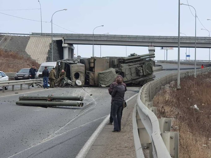 Военные «уронили» комплекс «Панцирь» из-за ямы на дороге (фото)