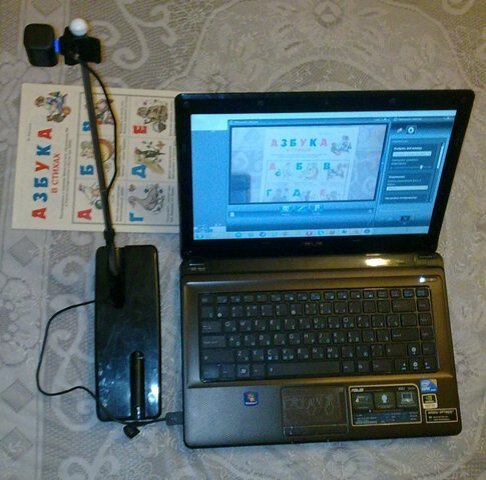 В мобильную студию на данном этапе входит ноутбук и с импровизированной документ-камерой (на основе вебкамеры).