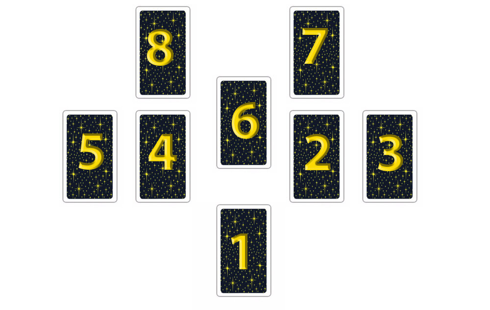 Этот расклад Таро поможет ответить вам на вопрос, случится ли загаданное событие в будущем? Впрочем, это может быть не обязательно конкретное событие, например "поеду ли я этим летом в Египет?", а нечто более общее и глобальное, например "достигну ли я высокого мастерства в этом деле?". Отчасти, этот расклад похож по своей сути на расклад Таро "Да или Нет", но в отличии от того расклада, этот расклад более подробный, а кроме того он подразумевает исключительно будущие события, то есть он не годится для вопросов типа "СЛУЧИЛОСЬ ли какое-то событие?". Чтобы сделать расклад, нужно сосредоточиться на интересующем вас событии и задать мысленно вопрос, случится ли оно, а затем выложить карты согласно схеме. Первая карта. Вероятность (предрасположенность) того, что событие случится. Эта карта показывает потенциал того, что событие случится, то есть его вероятность. Это не чётко "да или нет", тут более тонкие градации. Вне зависимости от события (хорошее для вас оно или нет), положительные к